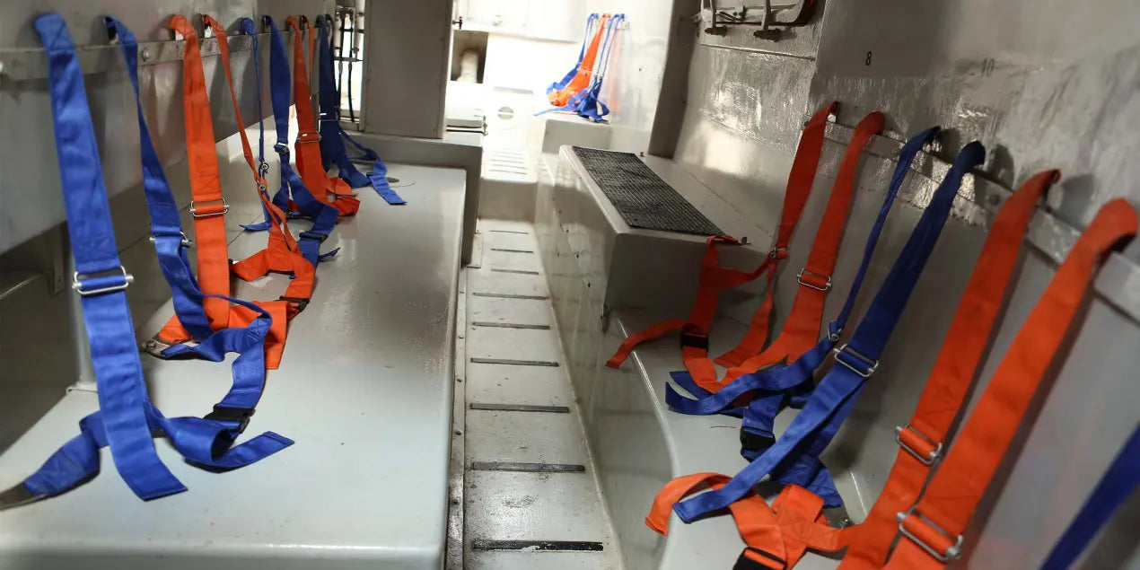Fully adjustable lap and shoulder straps to accommodate various occupant sizes and immersion suits.