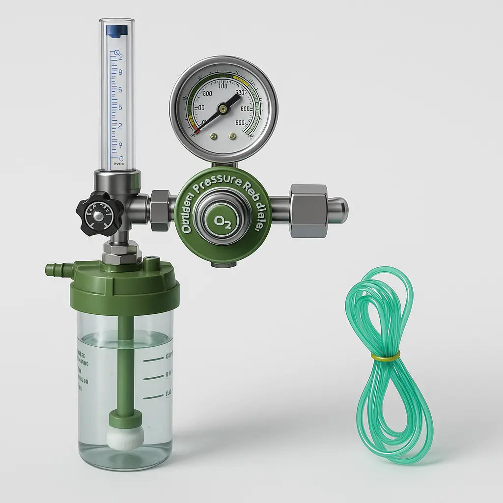 Integrated pressure-limiting safety valve and 360° swivel patient connector for controlled, ergonomic one-hand operation.